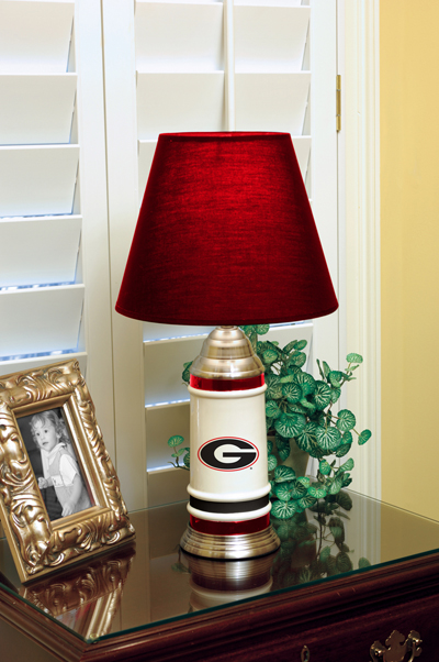 Light up any room in style with this officially licensedGeorgia Bulldogs Ceramic Table Lamp from The Memory Company®. This table lamp features a colored fabric shade with the Bud Light logo on the post, all in matching colors. It also is designed with pewter-finished accents